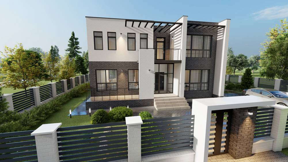 Загородный дом в стиле хай-тек с плоской крышей — стиль, который сейчас популярен в домостроении премиального класса. Панорамное остекление, комбинирование материалов и цветовых решений при отделке фасада — всё это делает проект уникальным.