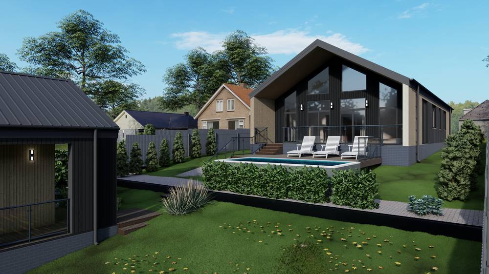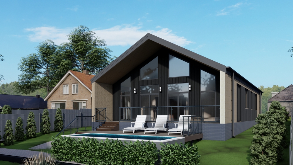 В доме располагаются 4 спальни, 2 санузла, кухня и большая гостиная с выходом на террасу.