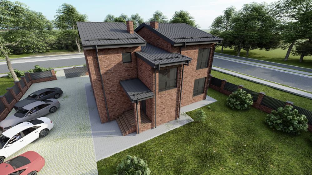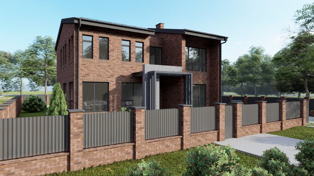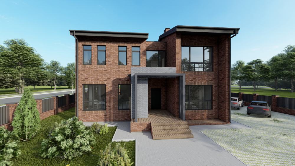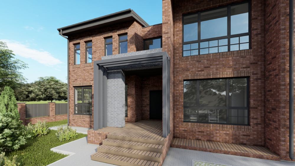 Залесный — это проект современного кирпичного дома с панорамным остеклением. Комфортная планировка и стильный интерьер. Отделка фасада выполнена премиальной серией облицовочного материала с акцентным оформлением входной группы кирпичом Recke.